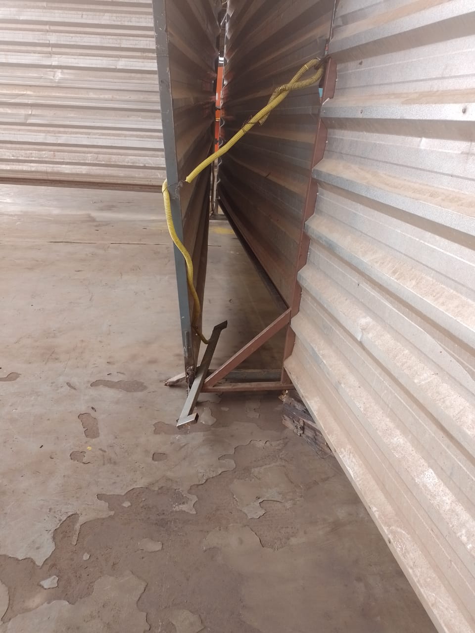 Tapume danificado sem amarrar com risco de queda em pessoas. Material foi recolhido e recuperado com auxilio do soldador