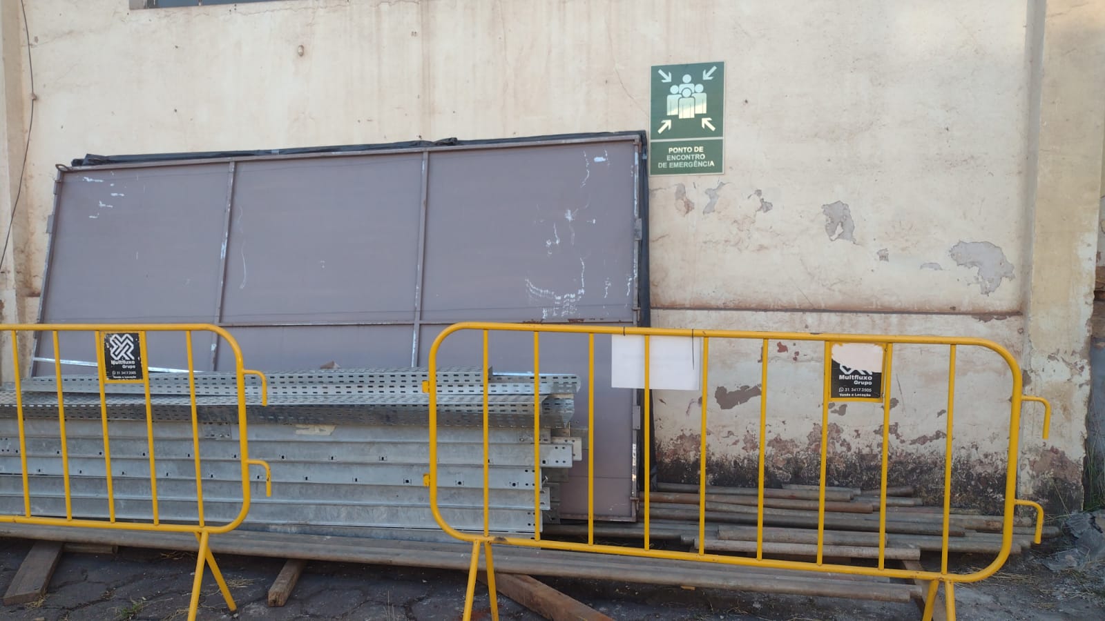 Ponto de encontro ( emergência) no canteiro Valério PCM estava obstruído com materiais.
