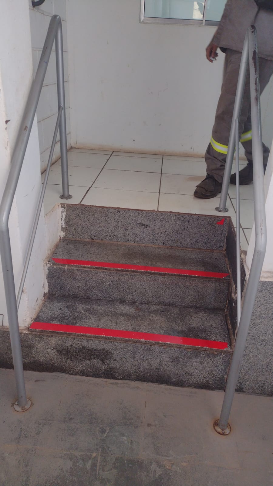 Escada de acesso ao escritorio PCM com corrimão da escada bambo. Solicitado a liderança PCM o aperto dos parafusos.