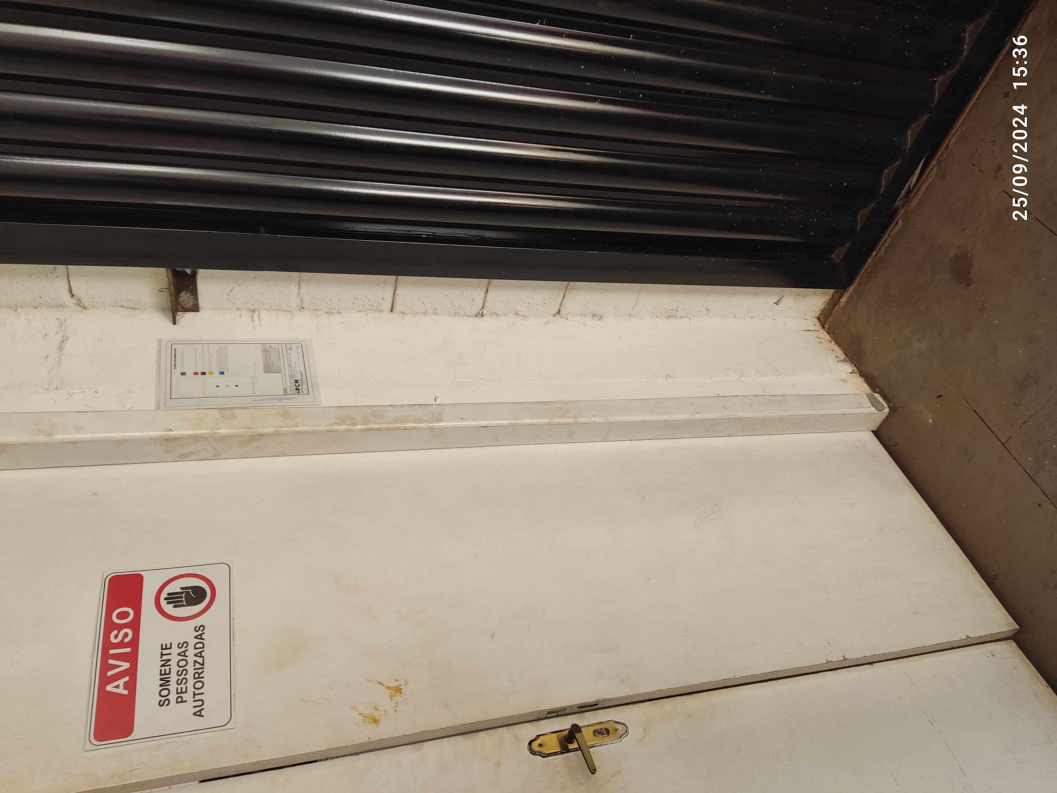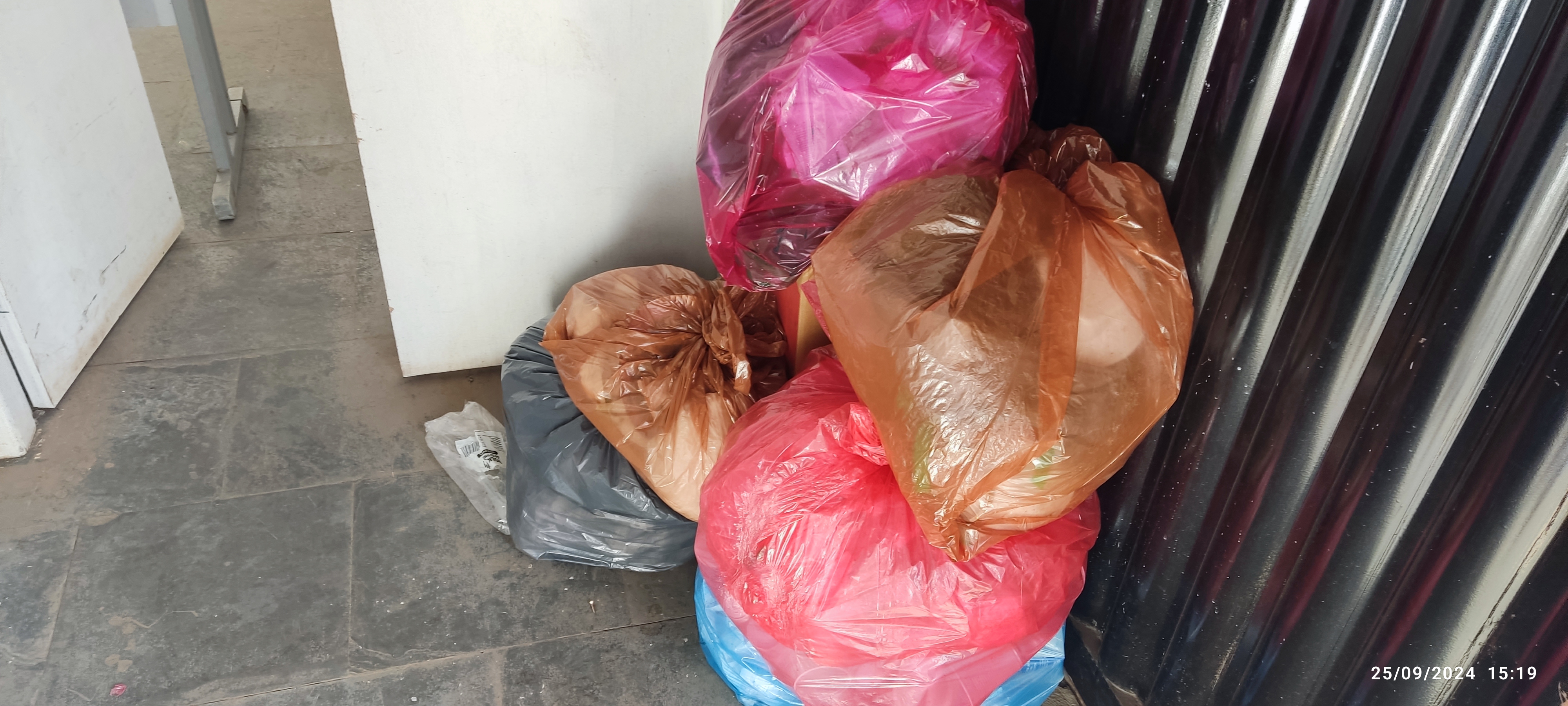 Lixo acumulado obstruindo porta e corredor de acesso.