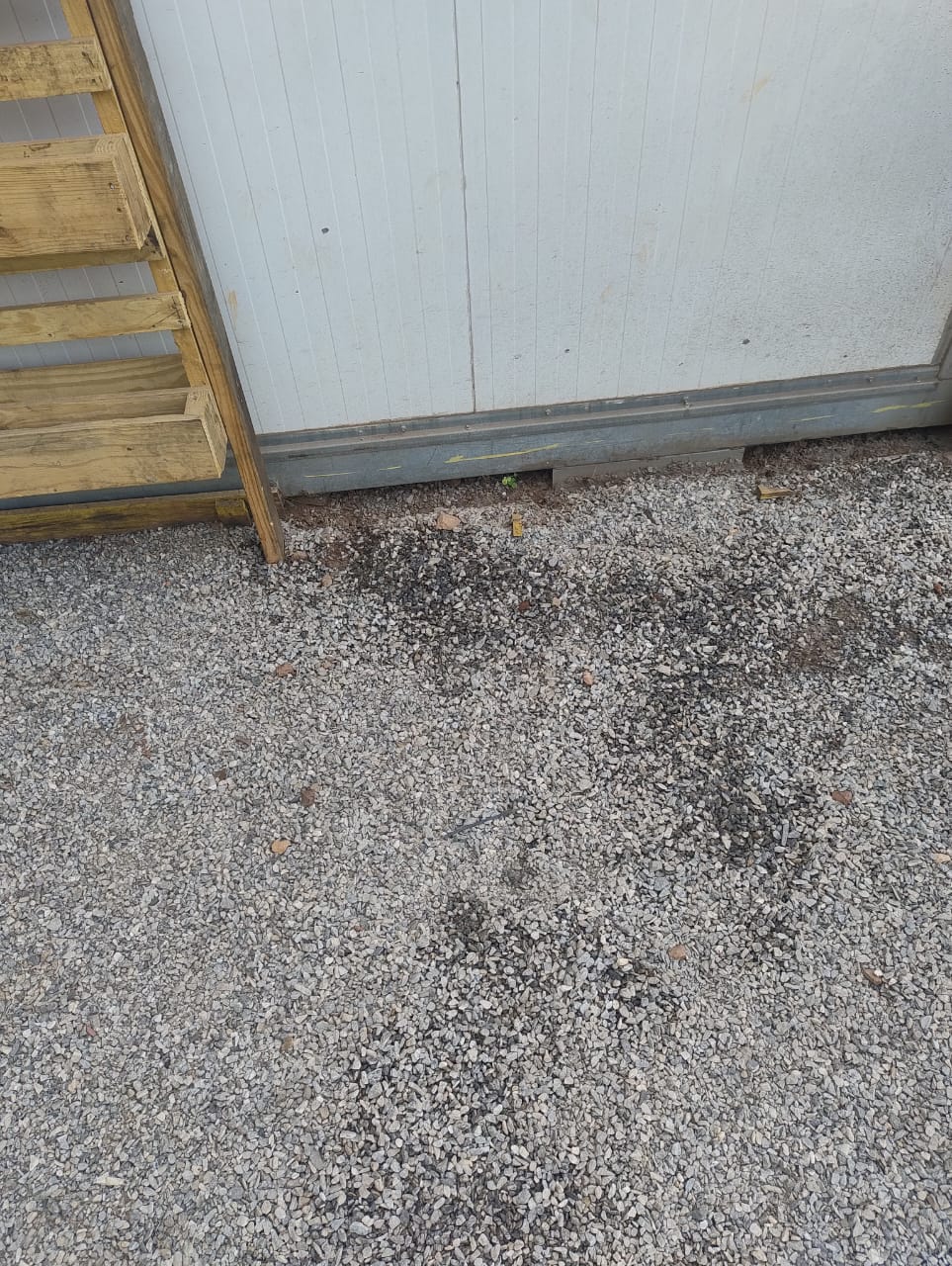 Área aberta abaixo do conteiner do canteiro avançado. Risco de entrada de animais peçonhentos. Foi posicionado fechamento de tapume de madeira no local.