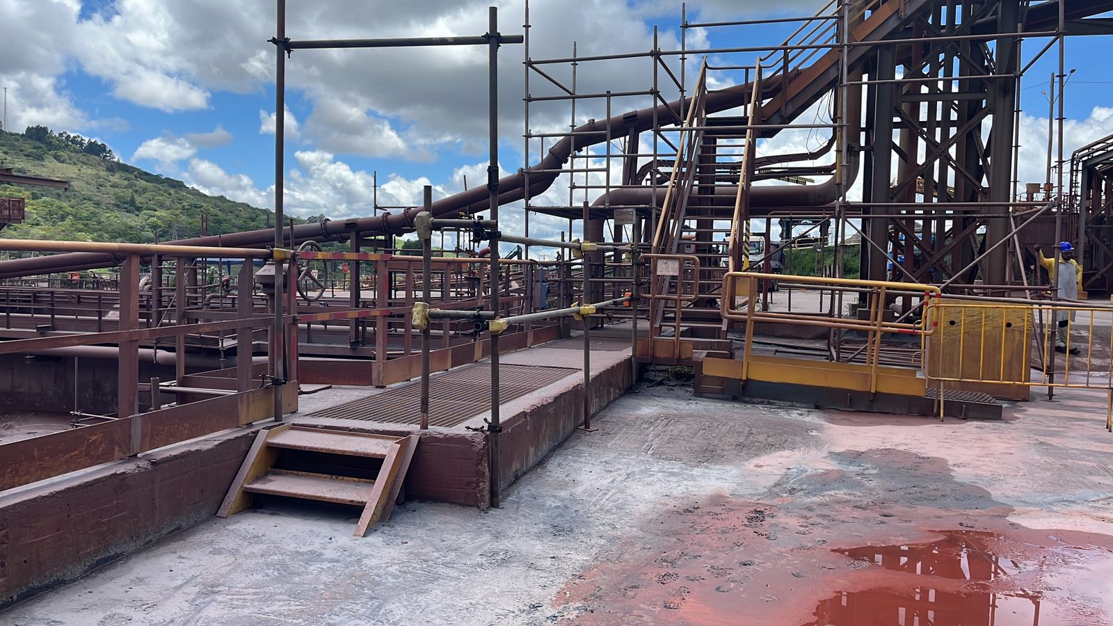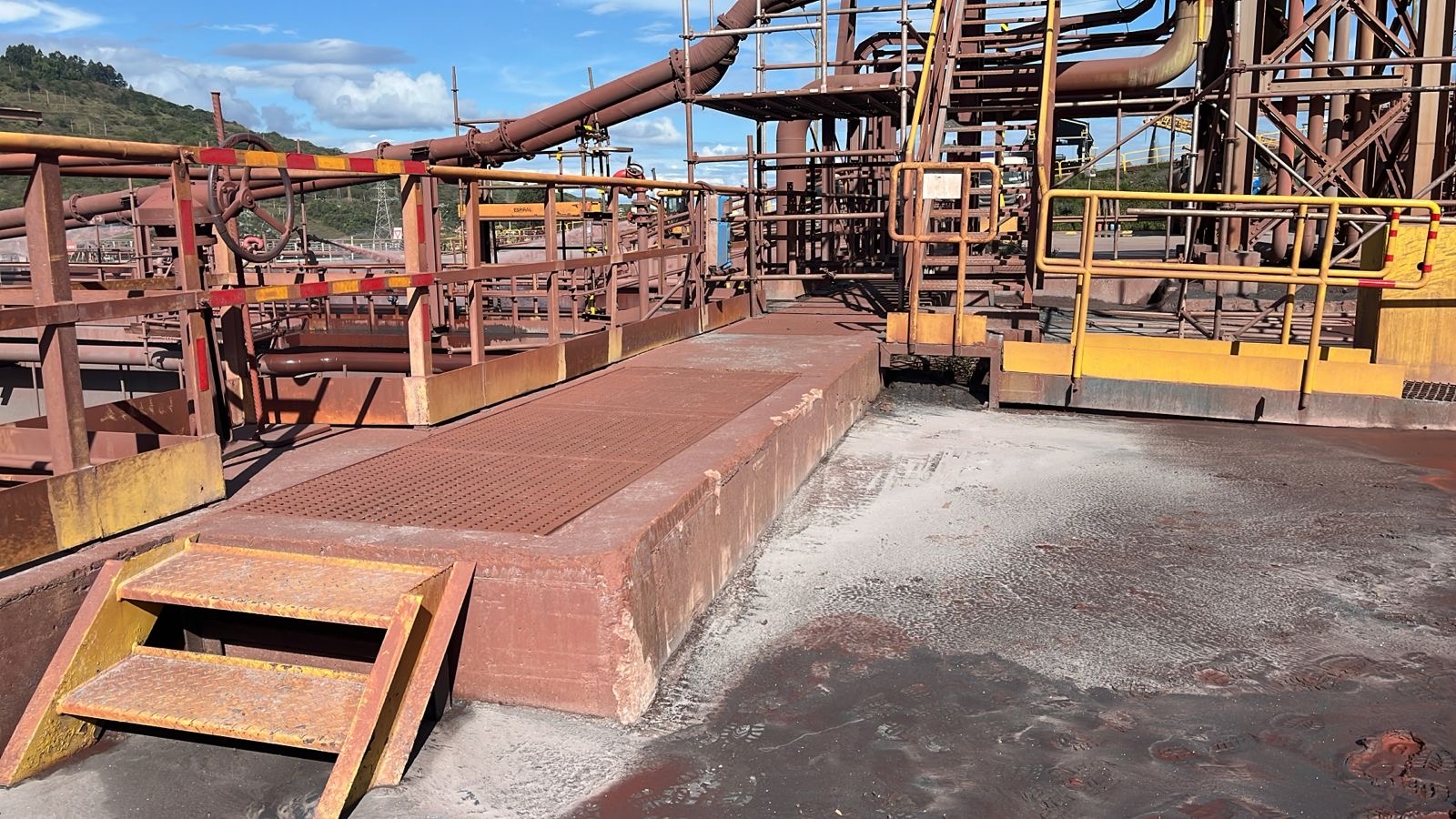 Acesso ao bandeja de cabos elétricos sem proteção de guarda corpo