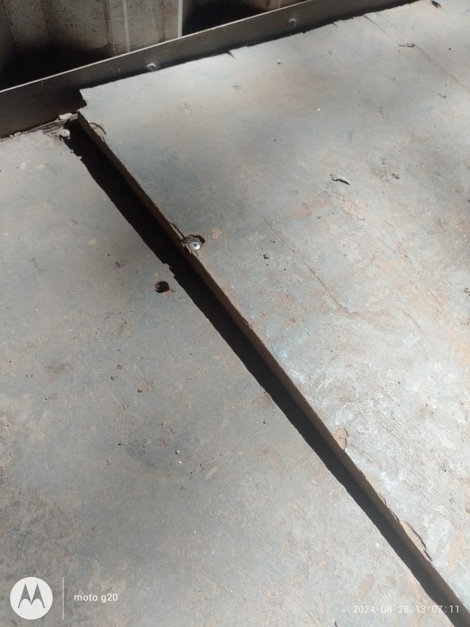Piso do container da ferramentaria da civil danificado podendo ocorrer risco de queda e torções. Foi posicionado o piso corretamente e fixados com parafusos.