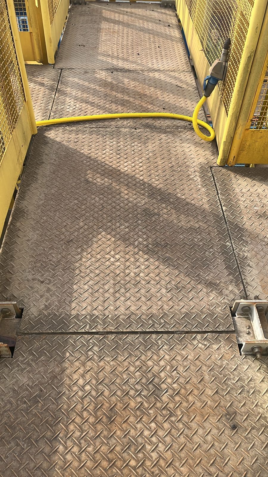 Cabos elétricos passando no chão , com risco de quedas e choque eléctrico