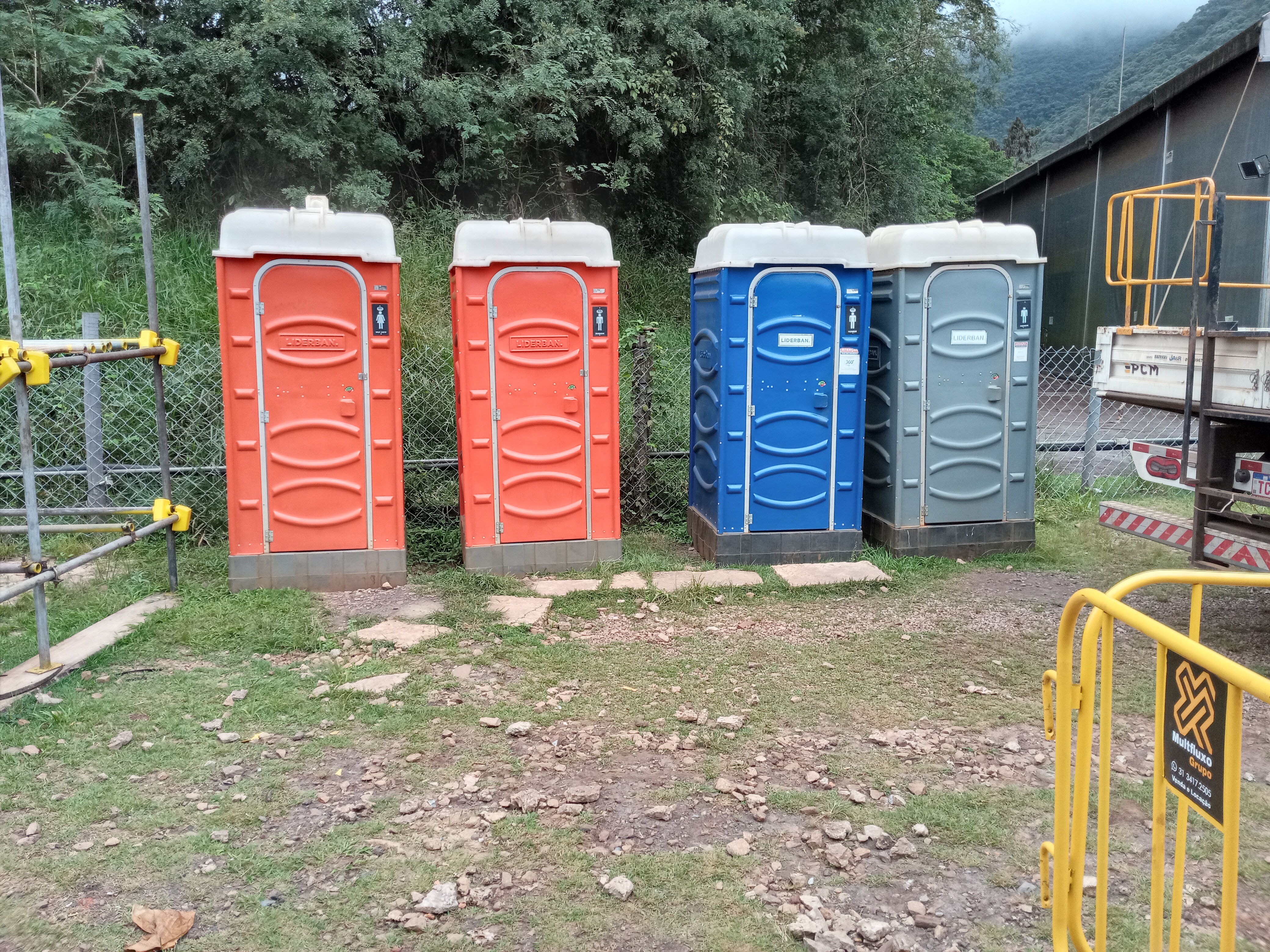 Ao realizar manobra de marcha-ré com caminhão carroceria, placa TCM 7G75, na área do Canteiro de Obras da PCM próximo ao gaveteiro de andaime e banheiro químico, o condutor nao isolou a área.